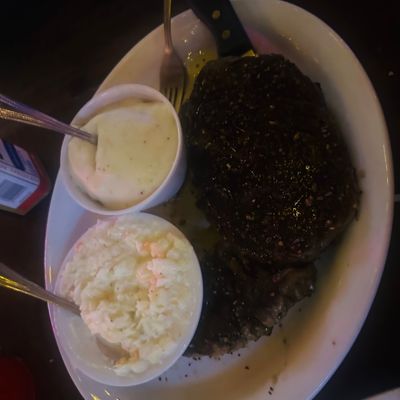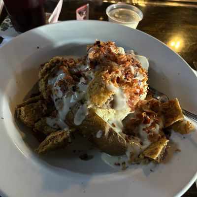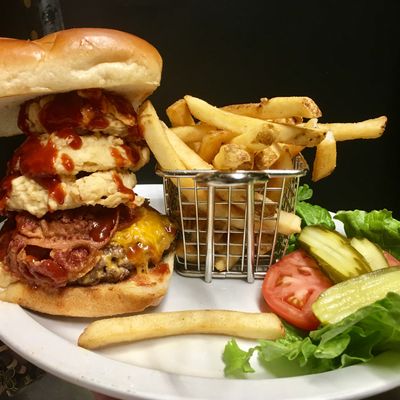 Classic American bar and grill with generous portions of comfort food, including its famous tater variations, steaks, and catfish, offering a lively atmosphere and live music on weekends.