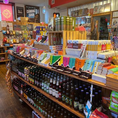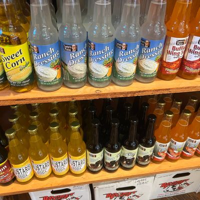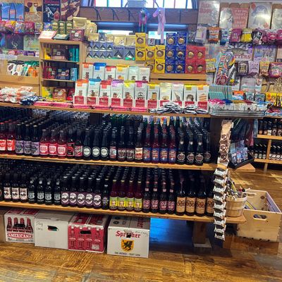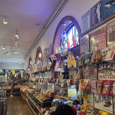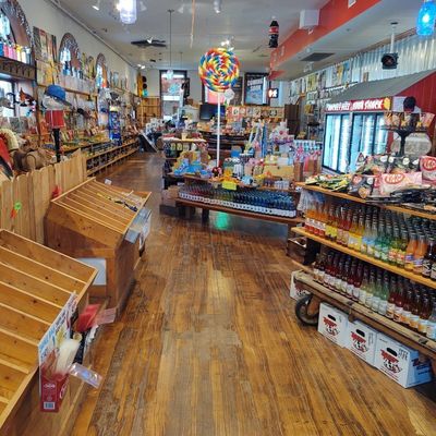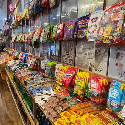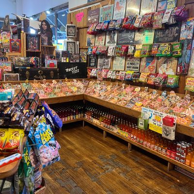 Specialty store offering a vast array of nostalgic candies and unique bottled sodas. The shop features a wide selection of treats reminiscent of childhood, alongside novelty drinks with creative flavors.