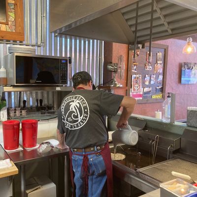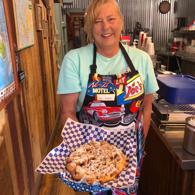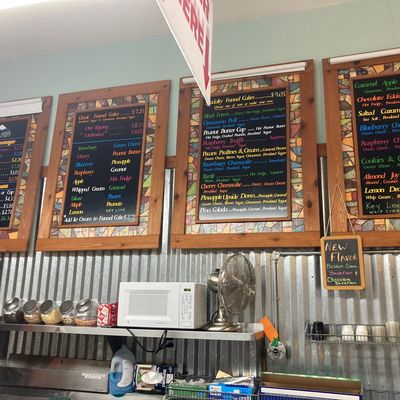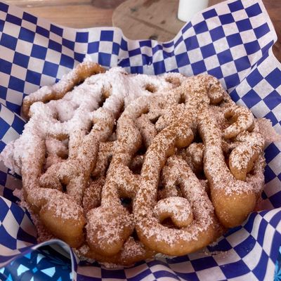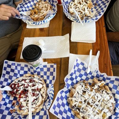 Small dessert shop near the train depot, specializing in large, customizable funnel cakes and ice cream, with friendly service.