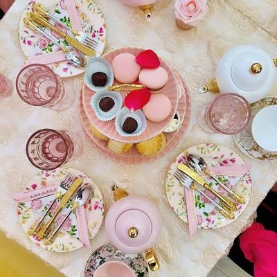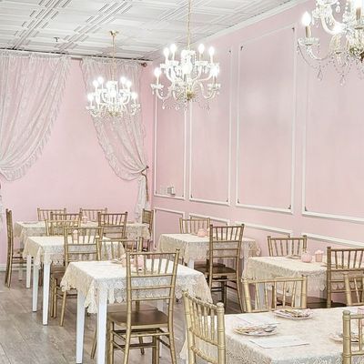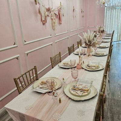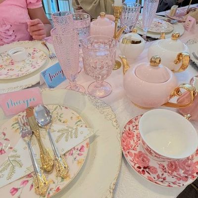 The space offers a fancy, upscale atmosphere perfect for celebrations like birthdays or bridal showers. It feels like a refined escape where guests can enjoy a formal, whimsical tea time experience.ambiance_potoo