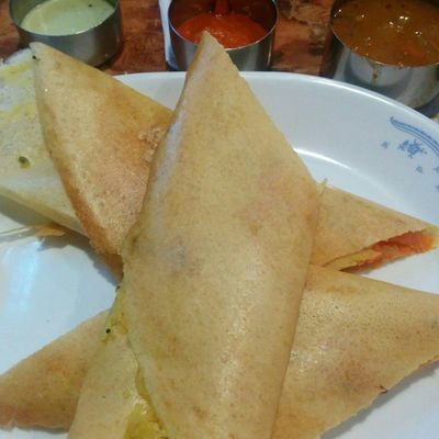 Vegetarian South Indian restaurant offering a wide variety of dosas, curries, and other dishes, known for its friendly service and authentic flavors.