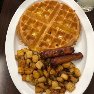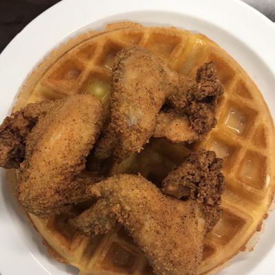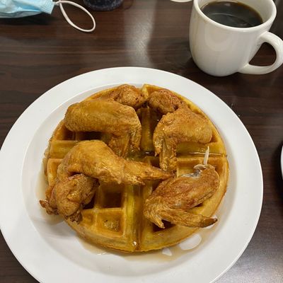 Small, family-friendly spot offering delicious Southern-inspired American breakfast, brunch, and lunch with standout chicken and waffles and shrimp and grits.