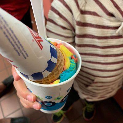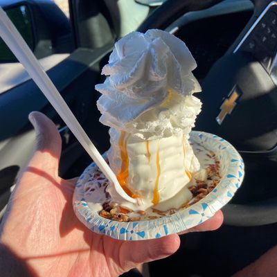 Small, seasonal ice cream parlor with vintage decor, offering soft-serve, sundaes, and basic food options in a charming downtown location.