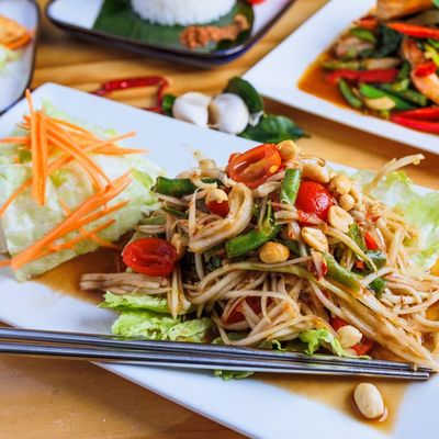 The menu features flavorful dishes like crab fried rice, pad Thai, and spring rolls. You should also try the mussels pancake or the savory boat noodles with homemade broth.food_potoo