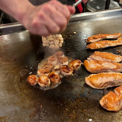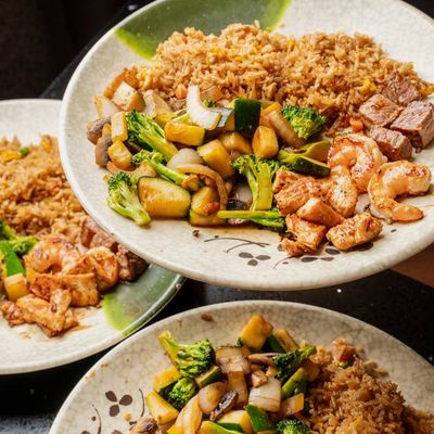 Lively Japanese restaurant with hibachi and sushi, offering a Pan-Asian influenced menu in a shopping center setting, featuring both an expansive hibachi room and a sushi bar.