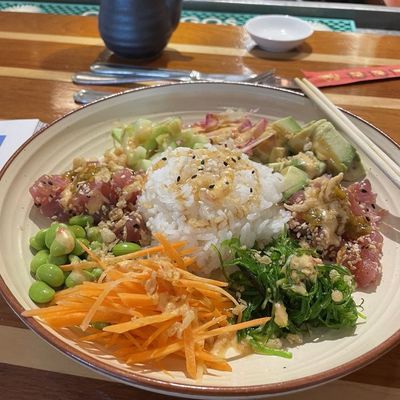 Casual upscale American restaurant with a lively bar scene, offering varied cuisine including sushi, seafood, and American comfort food, in a nautical-themed space.
