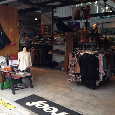 Retail store offering a selection of surfing and skating gear. The shop also features a variety of clothing for men and women.
