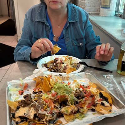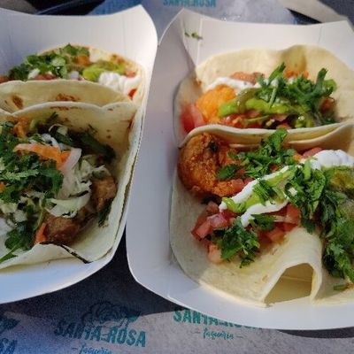 Meat for al pastor tacos comes from a gyro stick wrapped in pineapple, a birria taco is made with cheesy pot roast and consomé, and a spicy chorizo option comes with an egg.