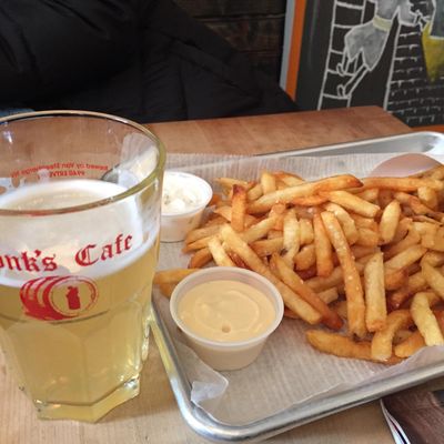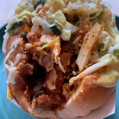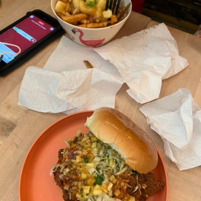 Fast-casual American spot with creative sauces, tasty chicken sandwiches and fries, and a casual atmosphere.