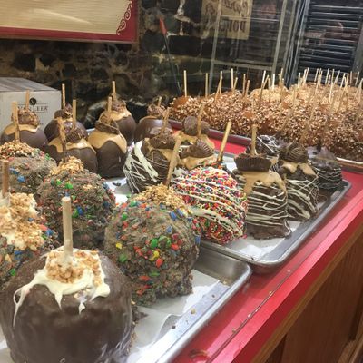 Popular candy store offering a vast array of sweet treats. Visitors can find everything from classic retro candies and chocolates to gelato, popcorn, and specialty items like caramel apples and pralines.
