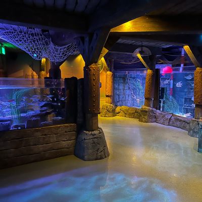 Indoor aquarium attraction offering an up-close look at marine life. It features interactive elements, including a touch pool, and themed exhibits designed to feel like underwater caves.