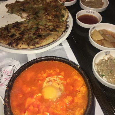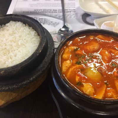 Korean restaurant with river views, offering tofu stew, BBQ, and bibimbap; it's a chain with generally good food and attentive service.