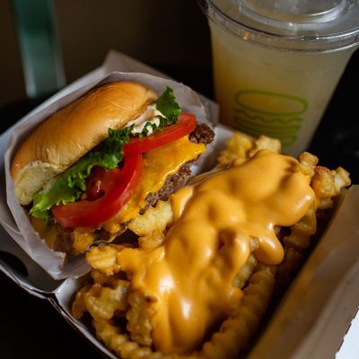 Chain offering elevated American fast food, including burgers, shakes, and fries, in a convenient downtown location.