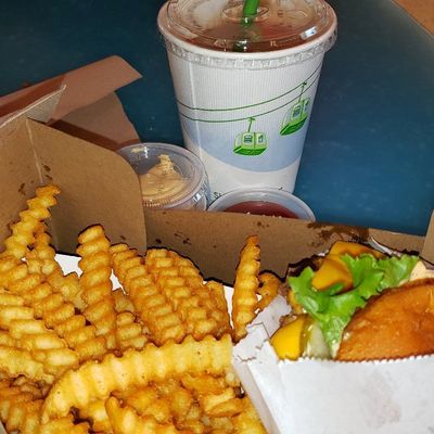 Patrons frequently highlight the high-quality burgers and the delicious milkshakes. The bright, spacious interior and the convenient use of kiosks for ordering are also noted as positive features.reviews_potoo