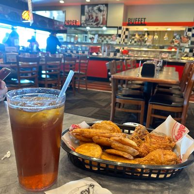 Focus on the classic pizza selections, crispy chicken wings, and their signature mojos. The salad bar is also a reliable staple for a fresh side.food_potoo