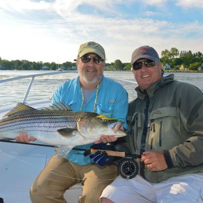 Shoals Fly Fishing and Light Tackle offers guided fishing trips specializing in striped bass. The charter provides a versatile experience, accommodating both fly fishing and light tackle with live bait.