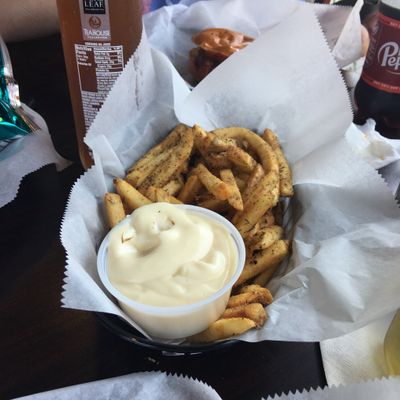 Casual American eatery known for its tasty burgers, sandwiches, and creative fries, offering takeout and delivery in a lively beachfront setting.