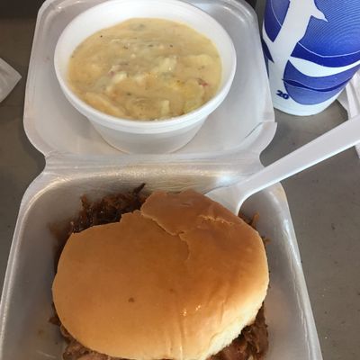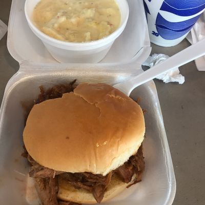 Seasonal, gas-station-based barbecue joint offering tasty, affordable pulled pork, brisket, and ribs, best enjoyed as takeout.