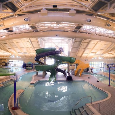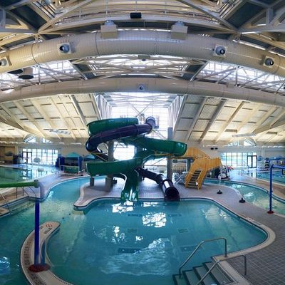 Indoor recreational facility offering a variety of water-based activities. It features heated pools, waterslides, and areas suitable for both children and adults, making it a versatile destination for family fun and swimming lessons.