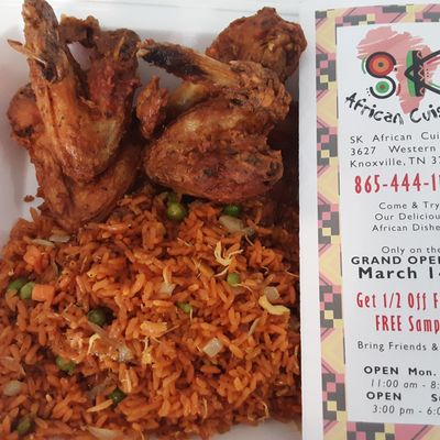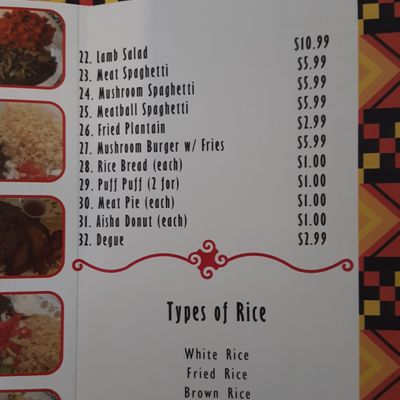 Small restaurant offering authentic African dishes, including fried chicken and seasoned rice.