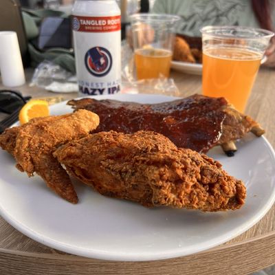 Enjoy the huge chicken wings and mozzarella sticks paired with an outstanding marinara sauce. For a lighter snack, the nachos are a popular choice among diners.food_potoo