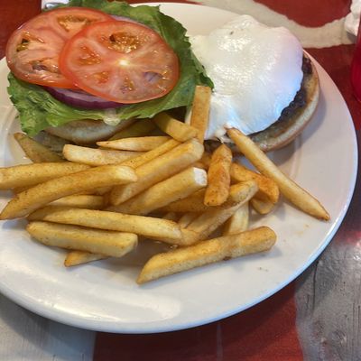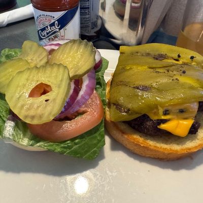 Roadside restaurant and grocery store offering American fare, including burgers, salads, and pizza, with a focus on fresh ingredients and scenic views.