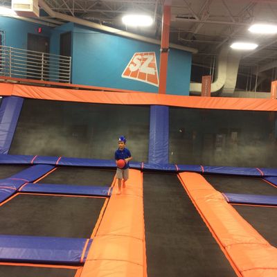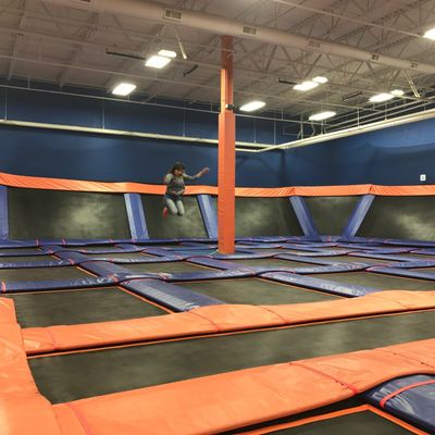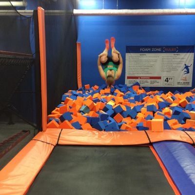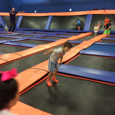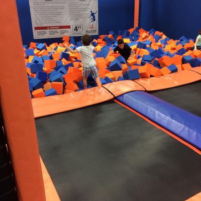 Indoor recreational facility offering a variety of trampoline-based activities. It features zones for free jumping, dodgeball, a foam pit, and a climbing wall, making it an energetic option for families and children.