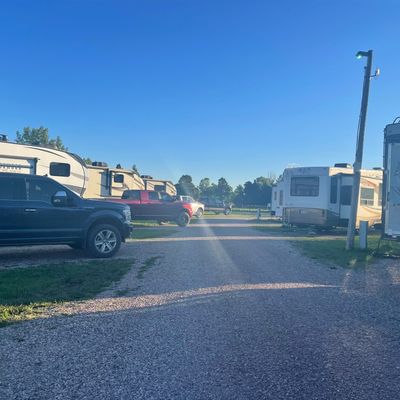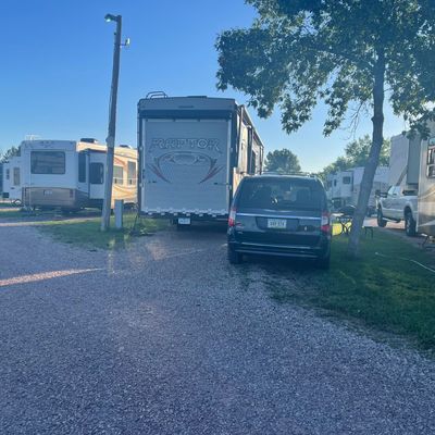 Convenient stopover location offering RV and tent sites, with options for full hookups or water and electric. It features clean restrooms and showers, on-site laundry facilities, and a dog park.