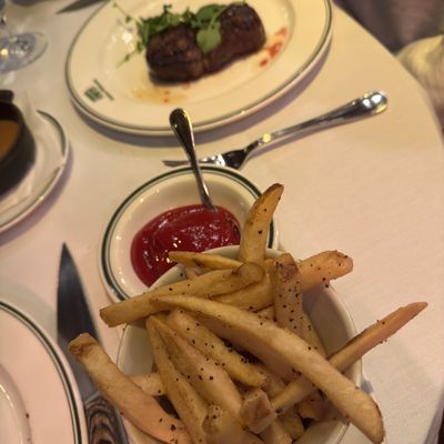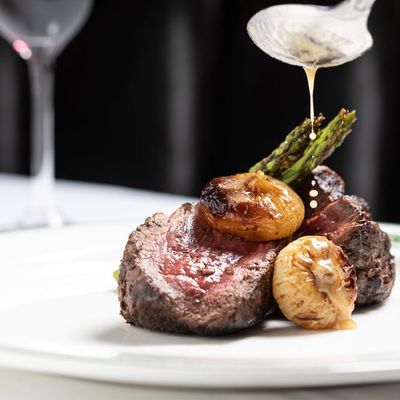 Patrons consistently highlight the exceptional quality of the steaks, specifically noting the melt-in-your-mouth texture of the filet mignon and the seared edges of the NY Striploin. The rolls and butter are also frequently singled out as standout delicious elements of the meal.reviews_potoo
