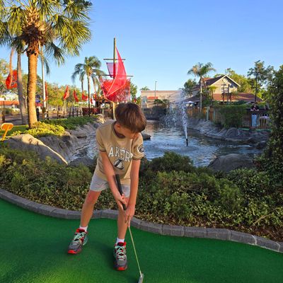 Well-maintained mini-golf course featuring an unusual and beautiful setting. The course offers an engaging experience for families, with the unique opportunity to feed baby alligators at the conclusion of your game.