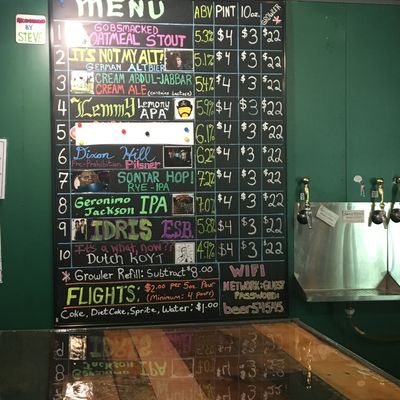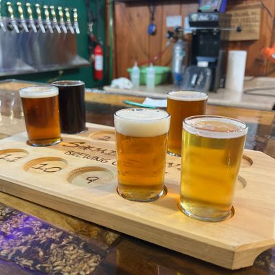 Craft brewery offering a variety of home-brewed beers, including IPAs, stouts, and cream ales. The tasting room provides a friendly atmosphere with views of wildlife through bird feeders outside the back windows.
