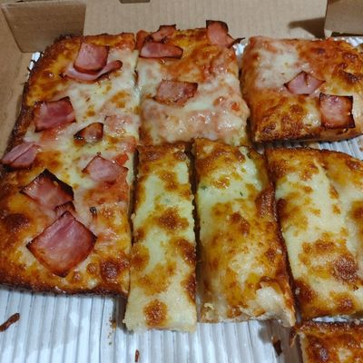 Small, family-friendly pizza place with a drive-thru, offering classic pies and other Italian-American dishes like chicken and salads.