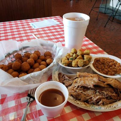 Lexington-style barbecue joint offering generous portions of barbecue, sides, and daily specials like flounder, with consistently positive reviews praising its friendly service and tasty food.