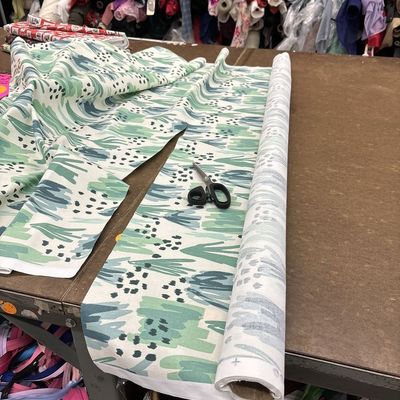 Vast warehouse offering an extensive selection of fabrics, from cotton and quilting materials to leather and lace. Customers often describe the experience as overwhelming due to the sheer volume of inventory, requiring time and patience to explore.