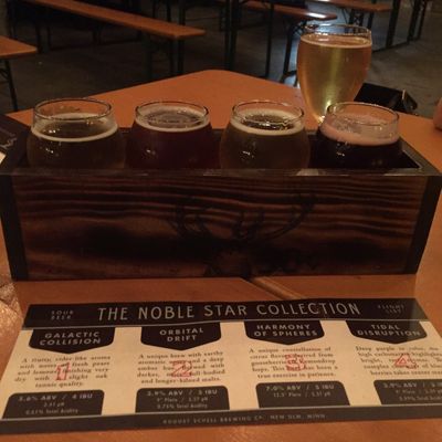 Unique taproom specializing in a wide selection of sour beers, offering a distinct departure from traditional brews. The interior boasts a beautiful, dimly lit atmosphere with antique touches and large communal tables, creating an intimate and charming ambiance.