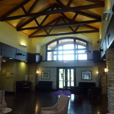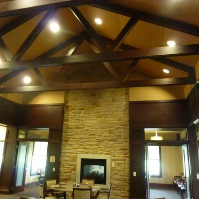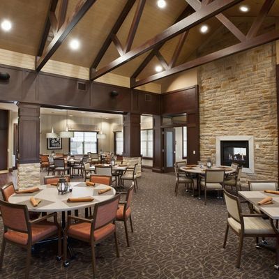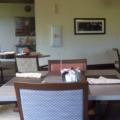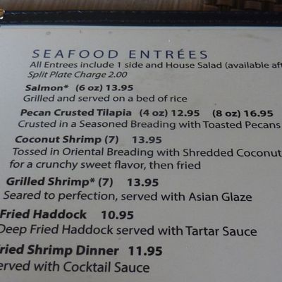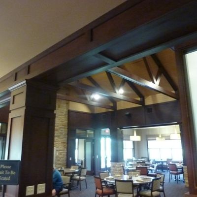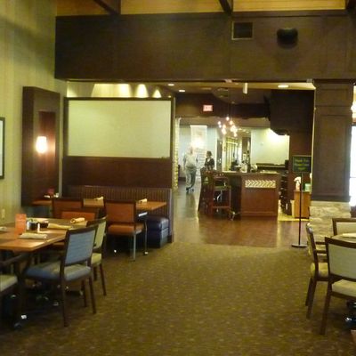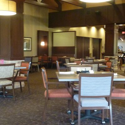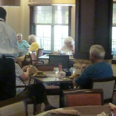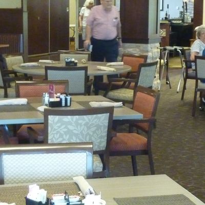 Quiet, American restaurant in a retirement community setting, offering varied dishes including seafood and American classics in a ski lodge-like atmosphere.