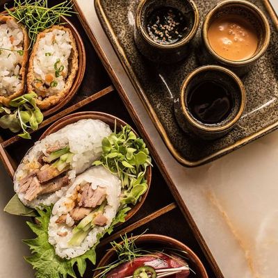 High-end hotel steakhouse and sushi restaurant with a modern vibe, offering both steak and seafood dishes alongside sushi.