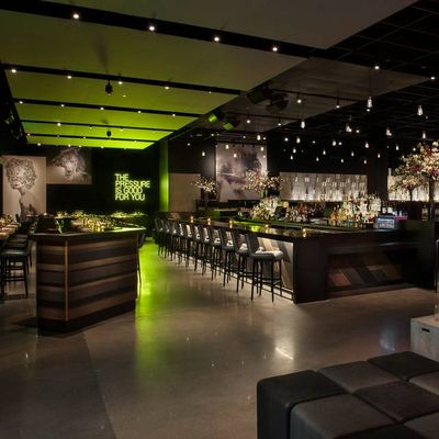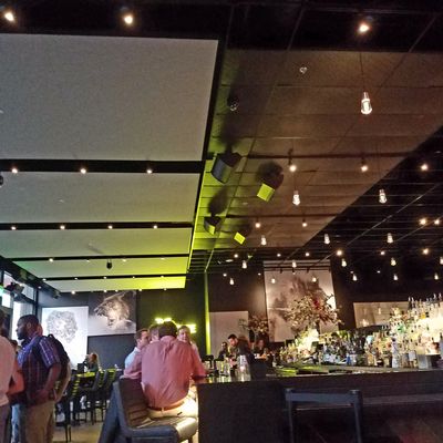 The atmosphere is high-energy and chic, blending a sophisticated steakhouse feel with a lively lounge vibe. Dim lighting and a stylish setting create a dynamic environment perfect for a night out.ambiance_potoo
