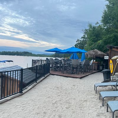 Lakeside bar restaurant with American cuisine, offering stunning views and sometimes inconsistent service; it features a large outdoor patio and caters to families.