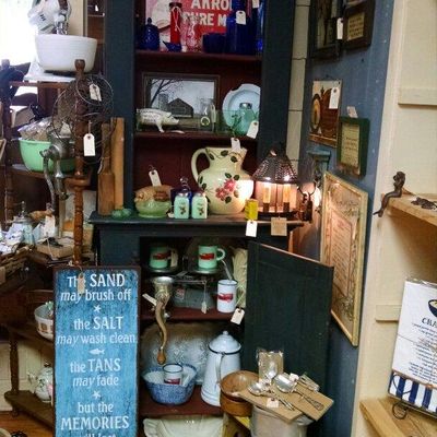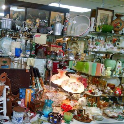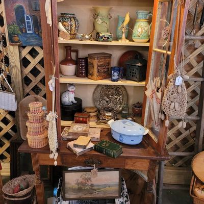 Delightful shop offering a diverse selection of unique gifts and decor. The inventory features a mix of real antiques and vintage items, including fine art, crystal, and even a gourmet food section.