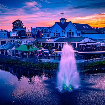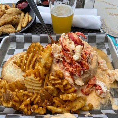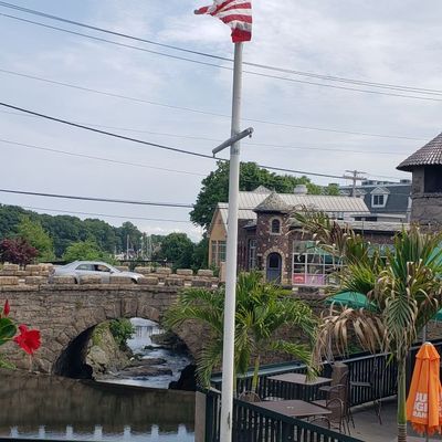 New England seafood restaurant with a lively atmosphere, offering American fare including pasta, and live music on weekends, situated on the river with multiple patios.