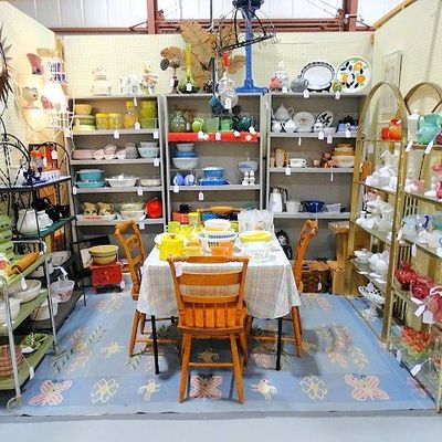 Large, multi-vendor establishment offering a vast and eclectic collection of antiques and collectibles. With over 200 dealers, it features a wide variety of items including furniture, vintage clothing, art, glassware, toys, and unique curiosities.
