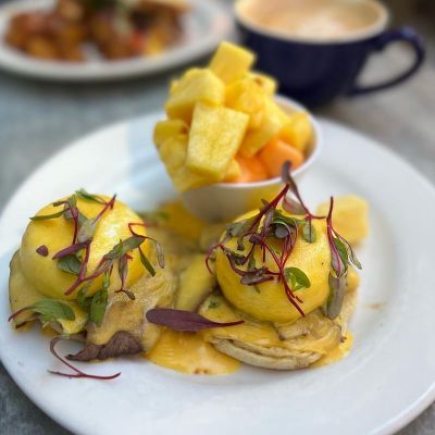 Casual, dog-friendly outdoor cafe serving American breakfast, brunch, and lunch with a focus on fresh ingredients and large portions.