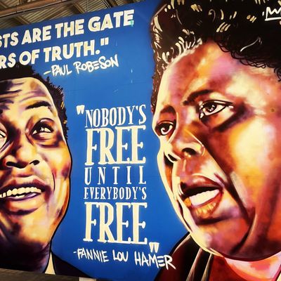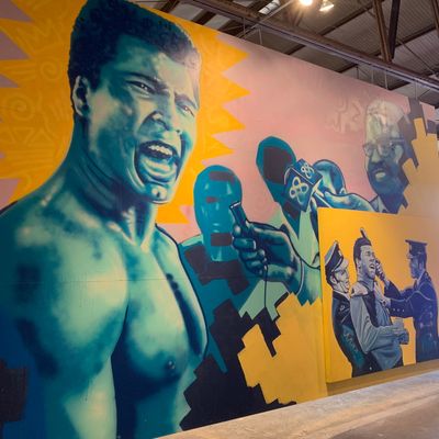 Expansive art gallery housed in a warehouse space. It features powerful and moving works that amplify the Black experience in America, focusing on themes of social justice, history, and expression.