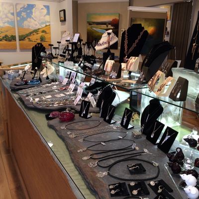 Studio Seven Arts is the Bay Area's largest art and custom framing gallery, featuring a diverse collection of jewelry, glass, sculptures, and fine art. The space showcases a variety of styles and rotating selections from local artists, making it a unique destination for gifts and art appreciation.