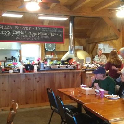 Farm-to-table cafe with a wood-fired oven, offering a delicious all-you-can-eat buffet featuring unique pizzas, homemade soups, salads, and desserts in a casual setting.