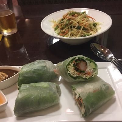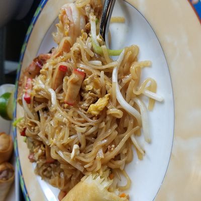 Modern Thai restaurant with fresh ingredients and generous portions, offering a range of dishes including curries and Pad Thai.