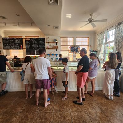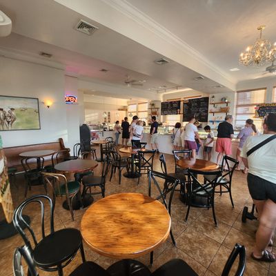 Charming, high-quality ice cream shop with a wide variety of flavors, homemade waffle cones, and ample seating in a beautiful building near the boardwalk.