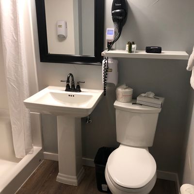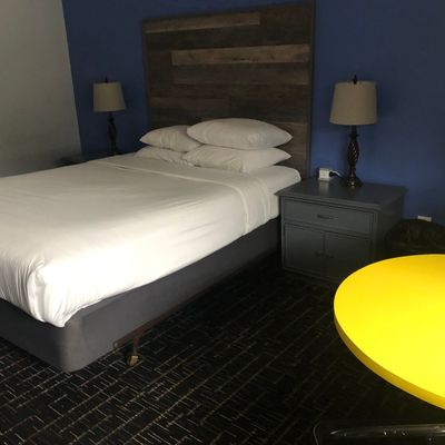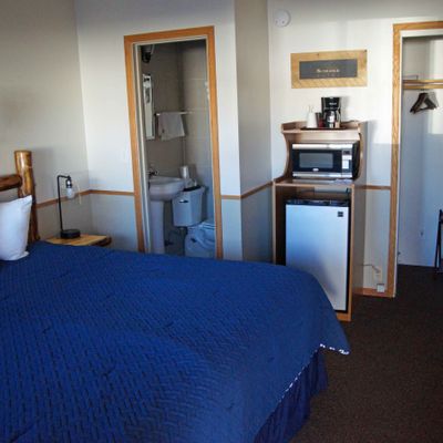 Refurbished, single-story roadside motel offering a clean and comfortable stay. It features nicely decorated, compact rooms with comfortable beds and essential amenities like a microwave, fridge, and coffee maker.