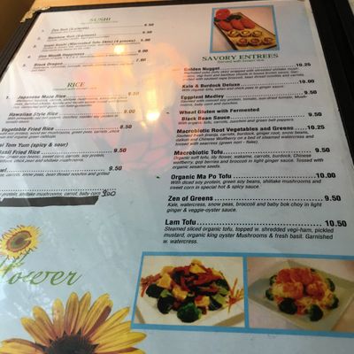 Cozy, Asian-fusion eatery offering a vast menu of vegan and vegetarian options, including sushi and mock meats, in a cheery atmosphere.